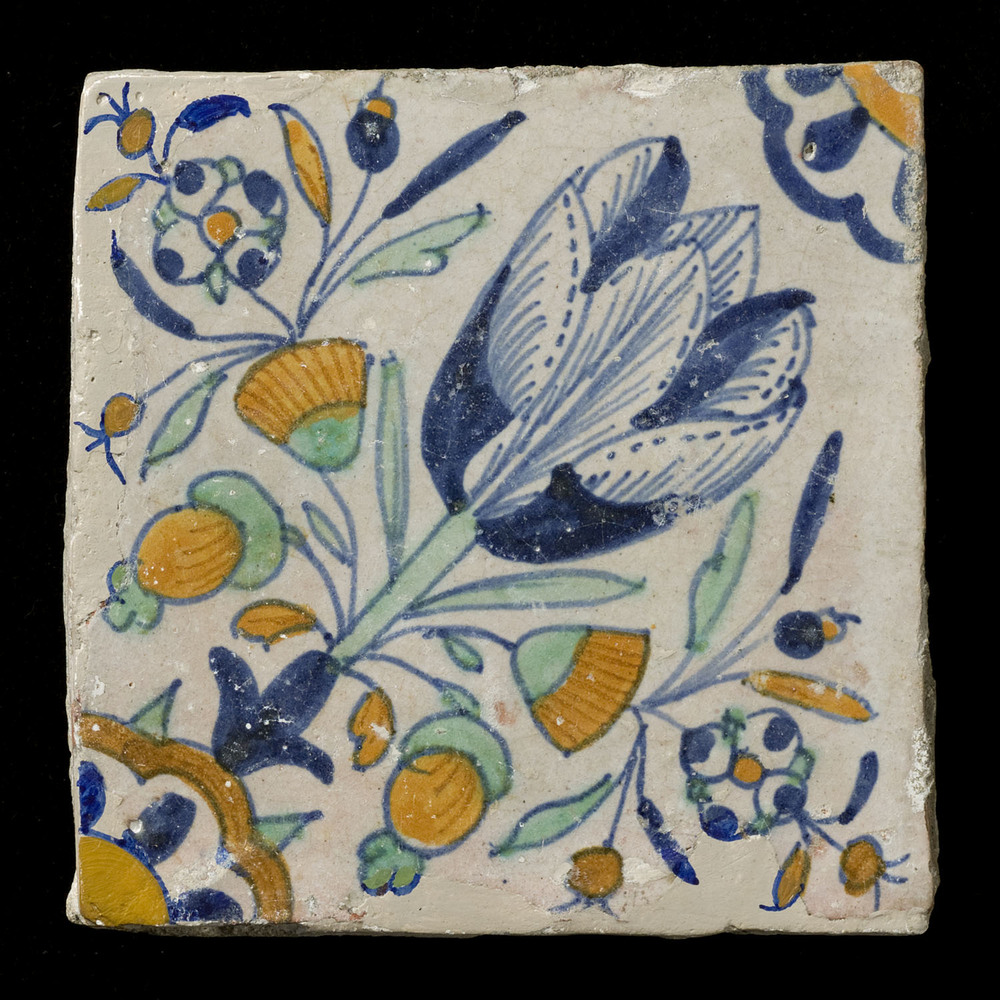 tegel van keramiek met tinglazuur, voorstellende: or...
