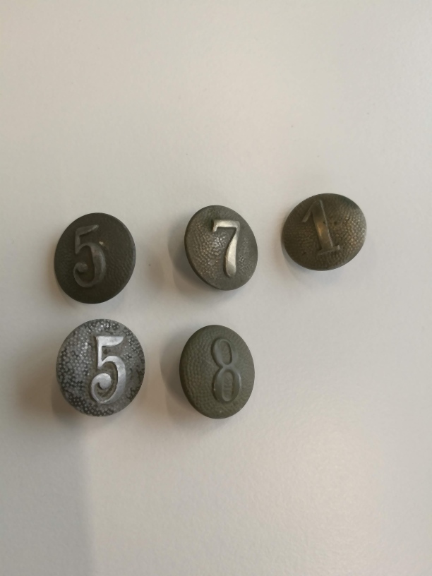 Knoop, knopen met diverse regimentsnummers