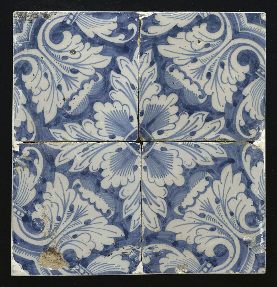 Tegelveld bestaande uit vier tegels van keramiek met...