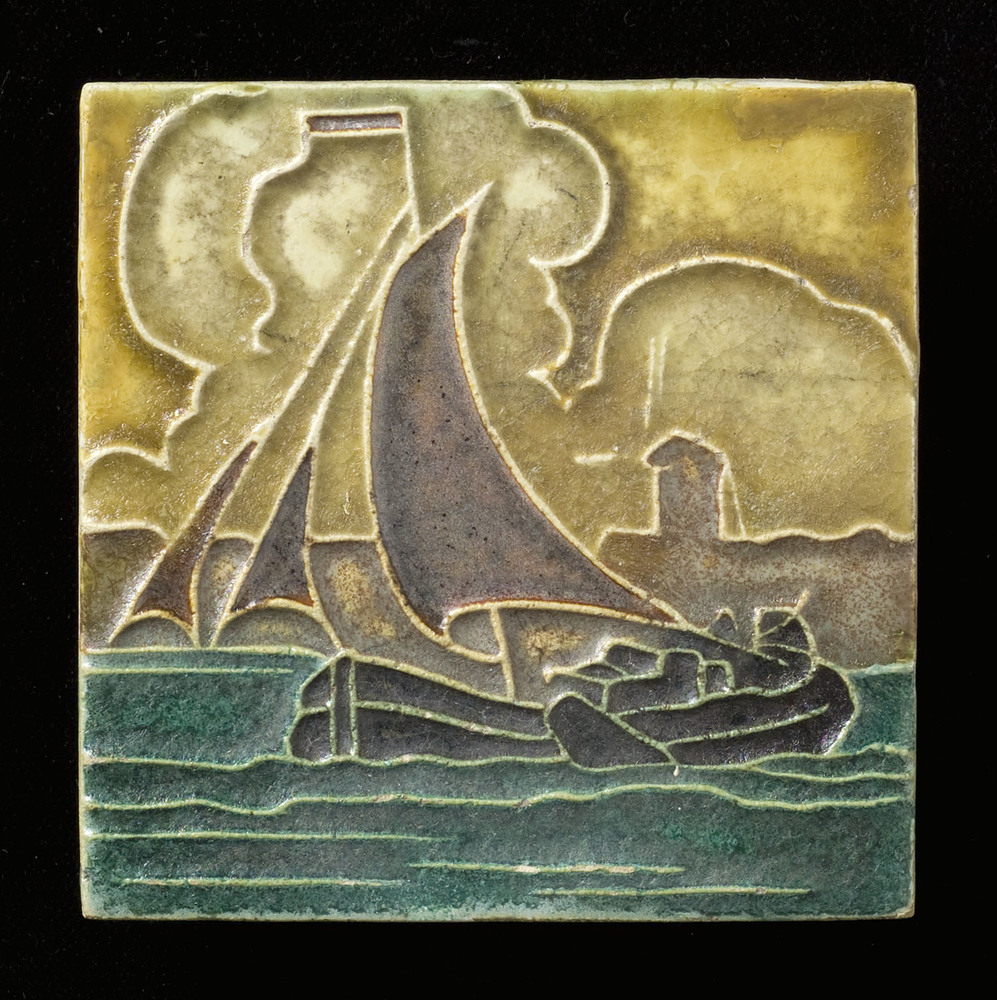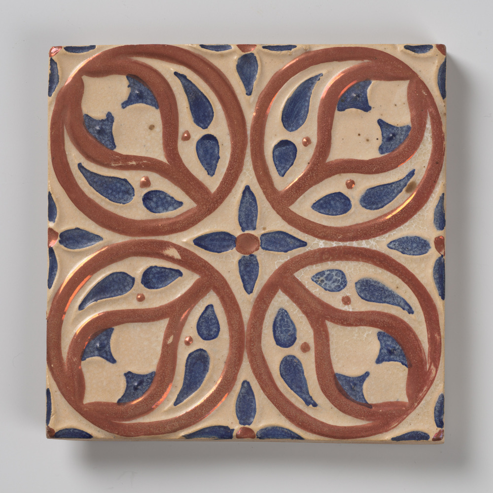 tegel van aardewerk i reliëf met lusterglazuur, voor...