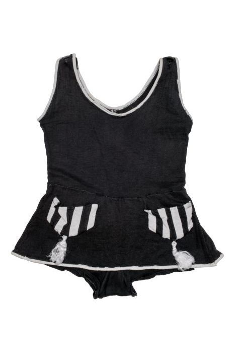 Zwart katoenen badpak met zwart-wit gestreepte zakje...