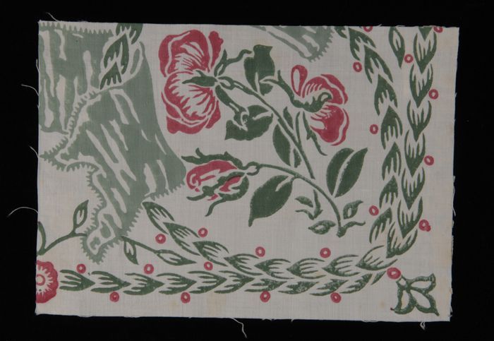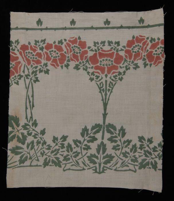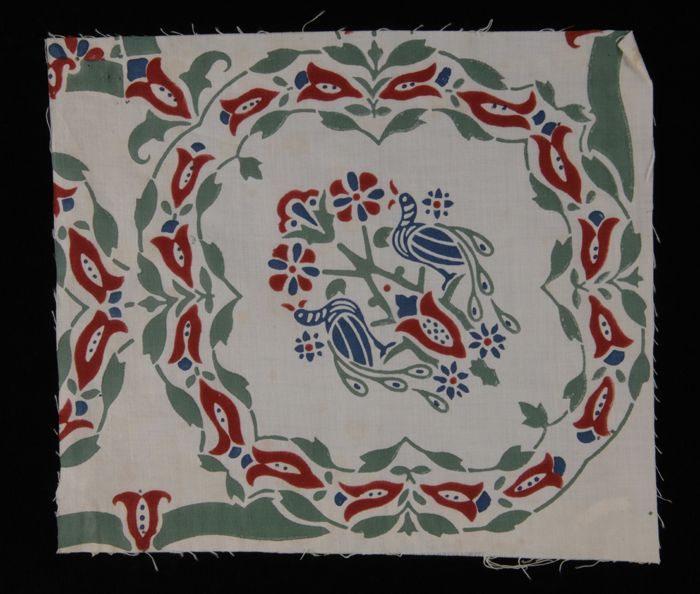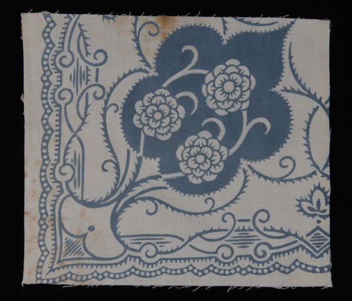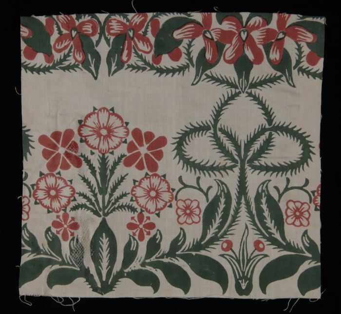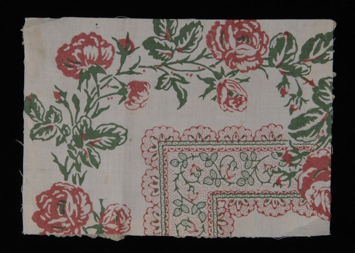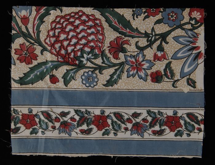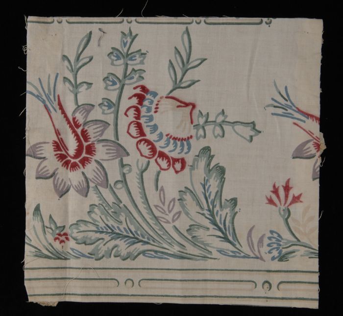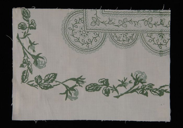 Stofstaal, lap katoen met dessin van tulpenrand, ged...