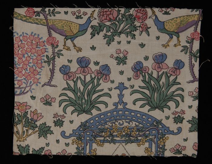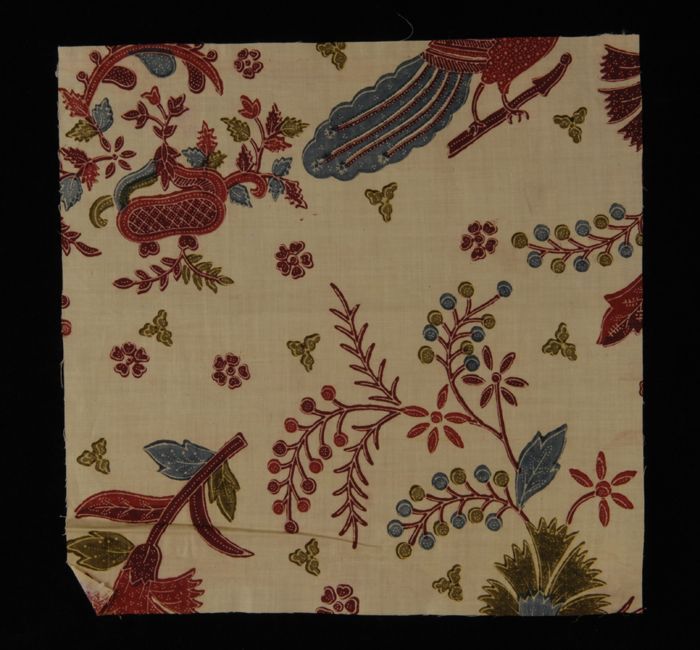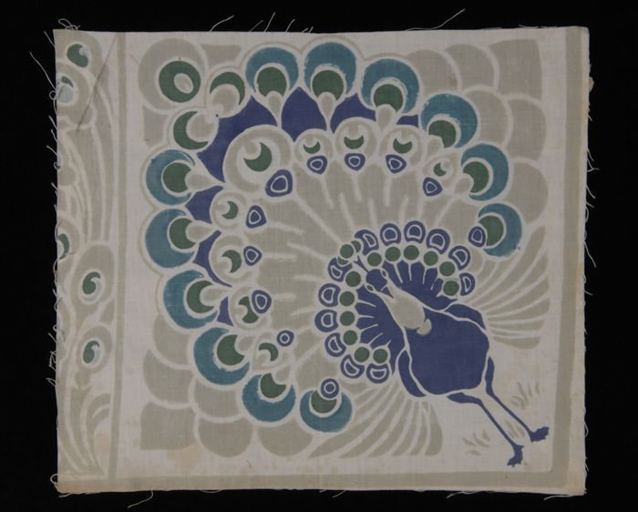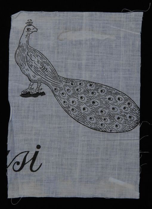 Stofstaal, katoen met dessin met een pauw en bloemen...
