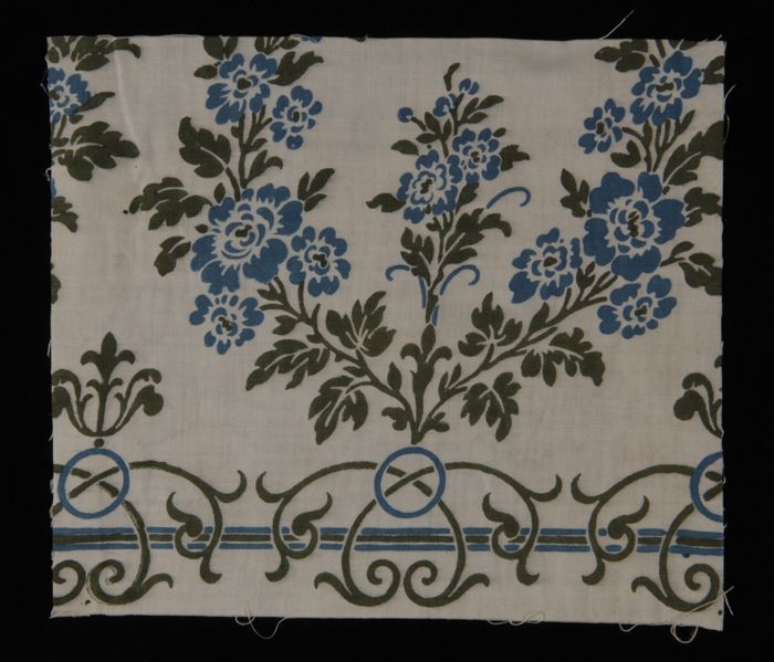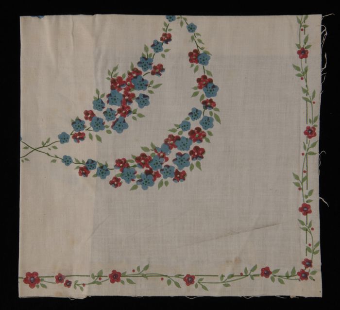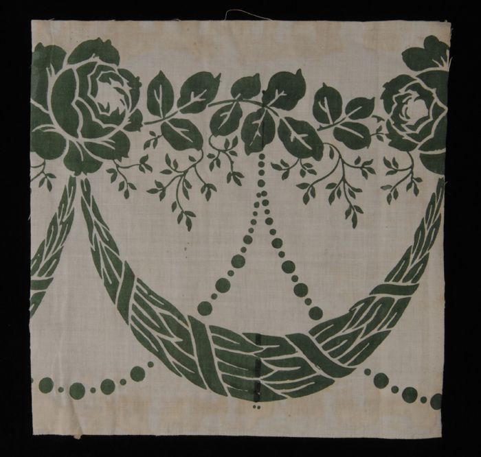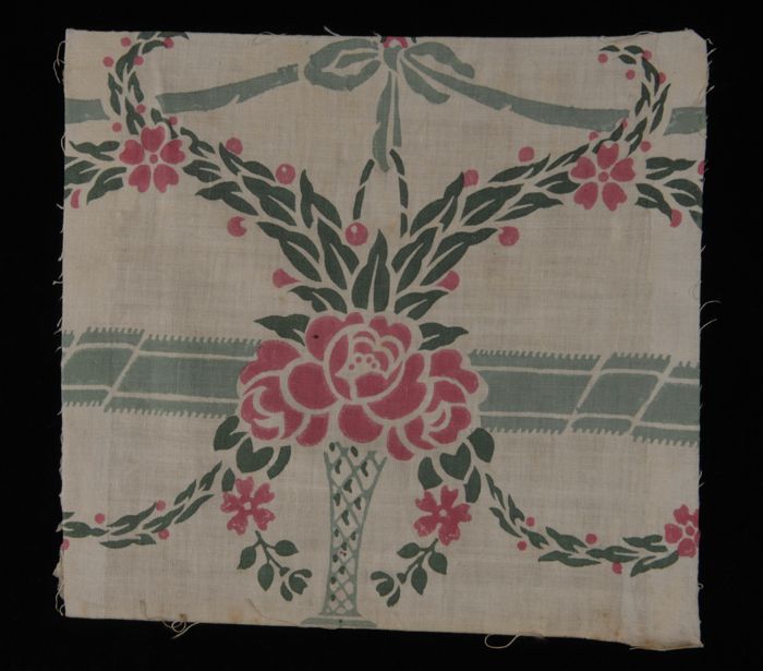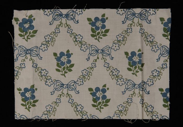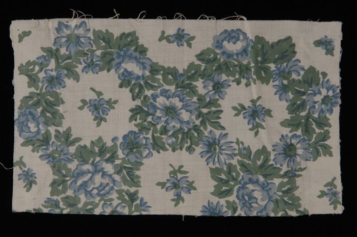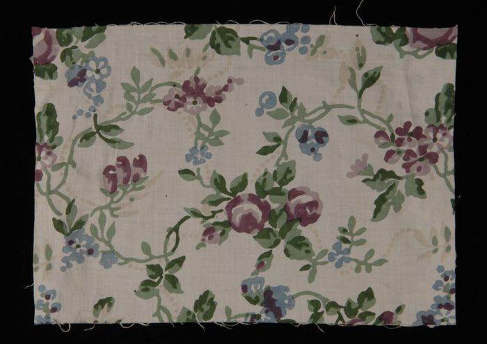 Stofstaal, katoen met dessin met bloemen en guirland...