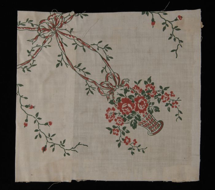 Stofstaal, katoen met dessin met bloemenmand en guir...