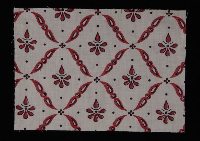 Stofstaal, katoen met dessin in rood, zwart en wit v...