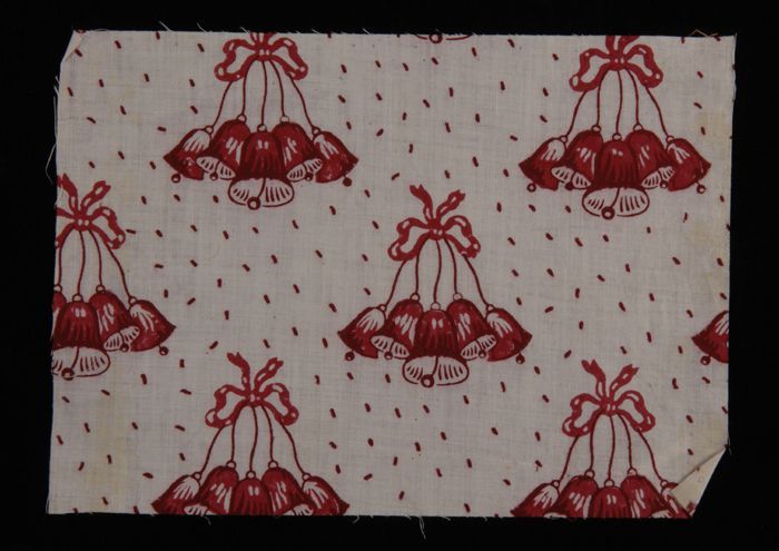 Stofstaal, katoen met dessin van kerstklokken in roo...