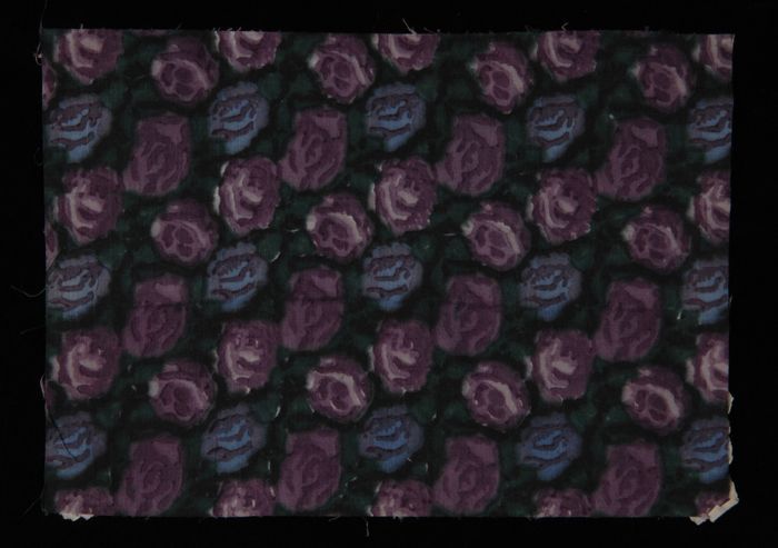 Stofstaal, katoen met dessin van rozen in lila, blau...