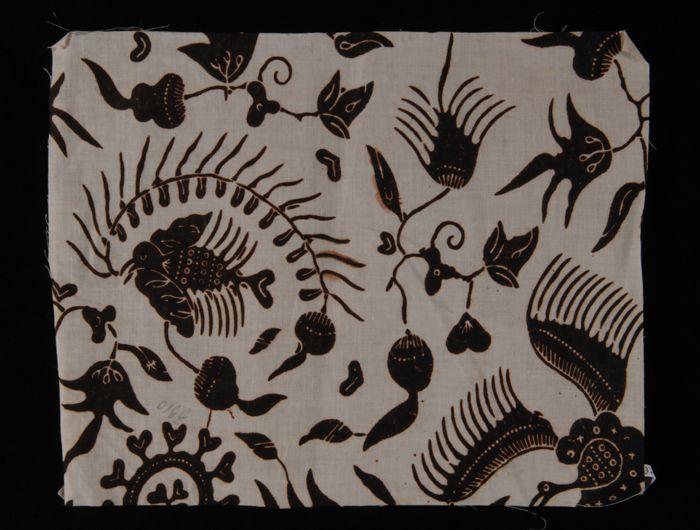 Stofstaal, katoen met batik dessin met bloemranken i...