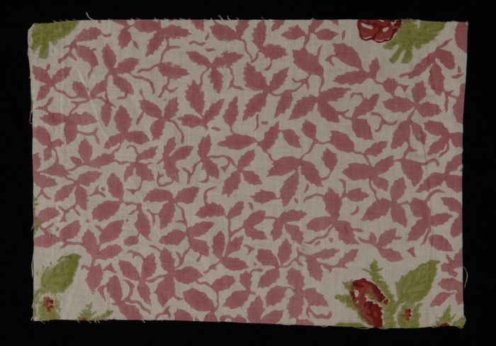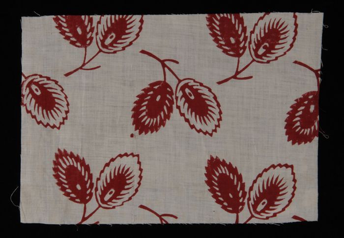 Stofstaal, katoen met dessin van bladvormen in tinte...