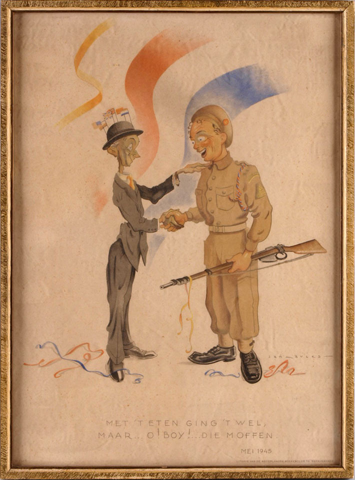 Spotprent, in lijst, Man bedankt Canadese bevrijder