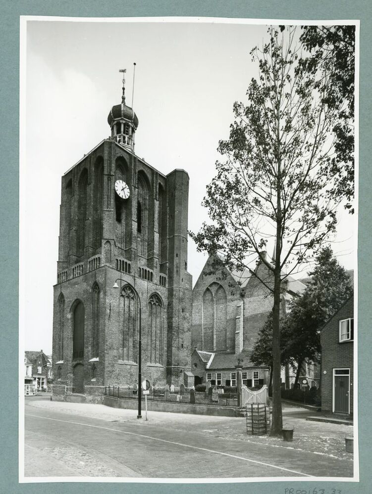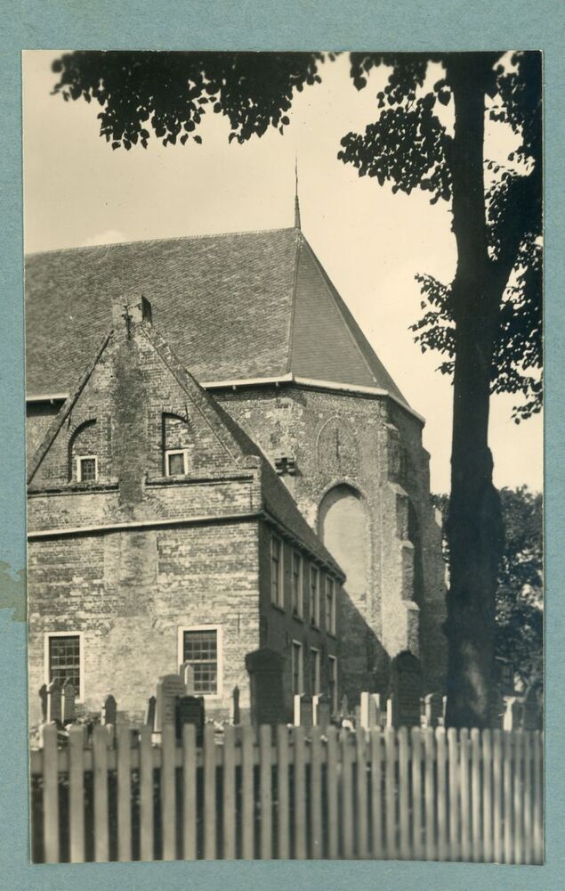 Eén van 6 zwart-wit foto's van de R.K.-kerk en de do...