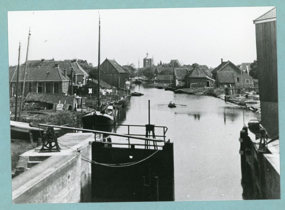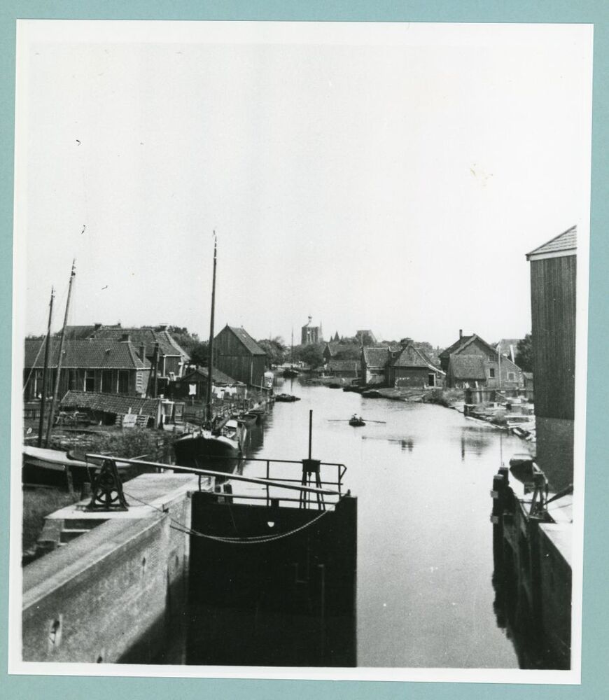 Eén van 6 zwart-wit foto's van de sluis in Workum