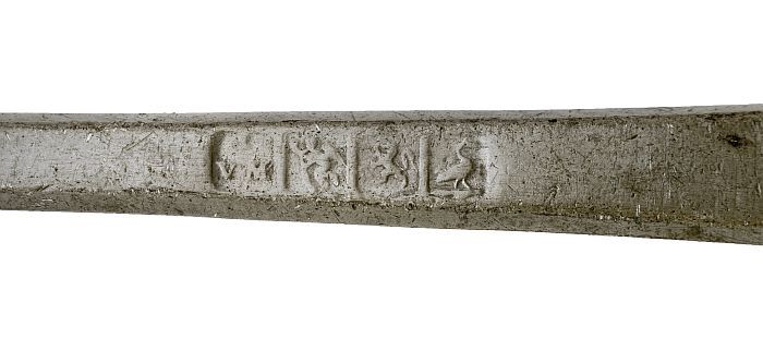 Verendecoratie, kop en platte uitwaaierende hals van...