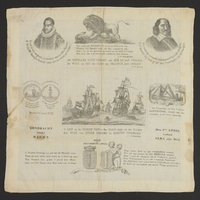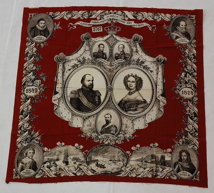 Herinneringsdoek, bedrukt met prent in zwart en wit ...