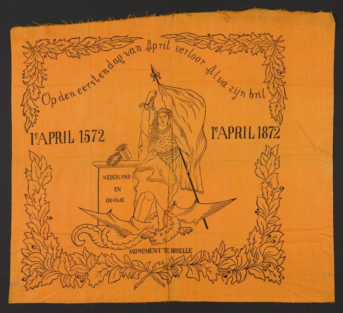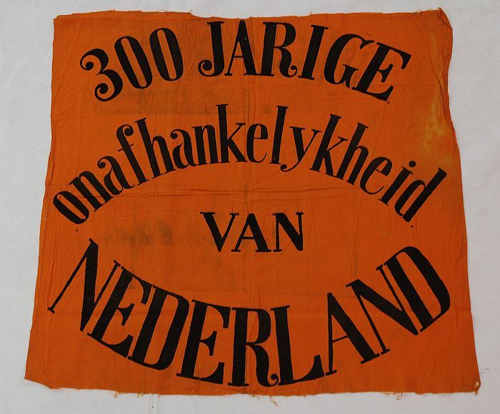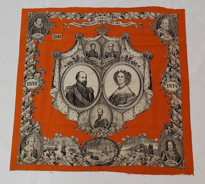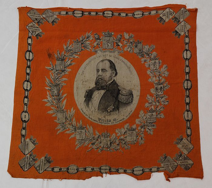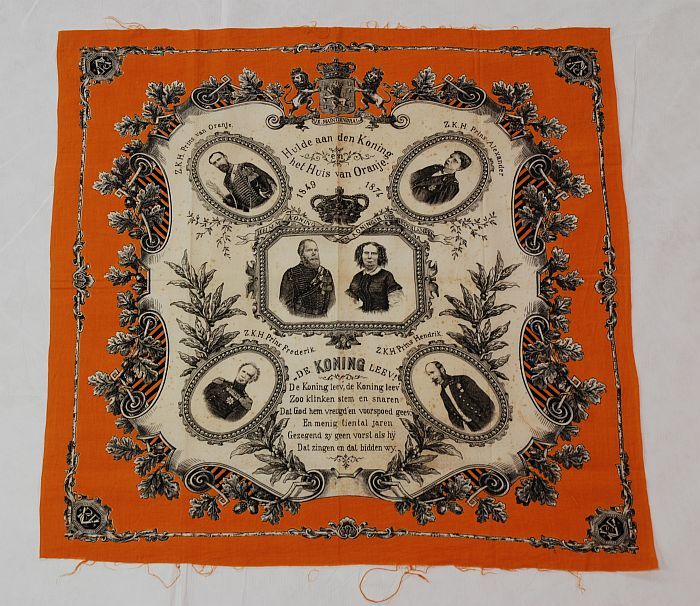 Herinneringsdoek, oranje katoen met opdruk in zwart,...