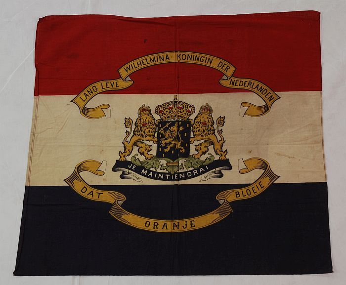 Vlag van rood, wit en blauw katoen, met het rijkswap...
