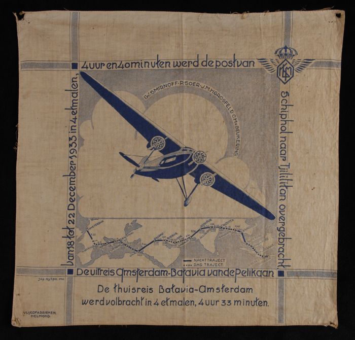 Herinneringsdoek, litho in zwart op wit katoen, cent...
