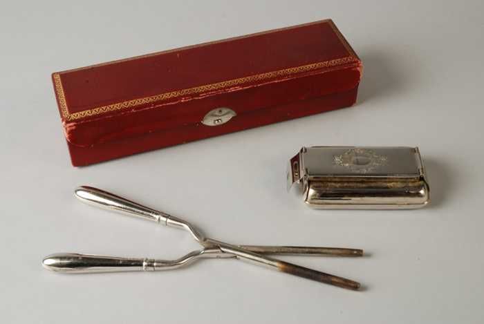 Langwerpige doos met krultang en spirituscomfoor