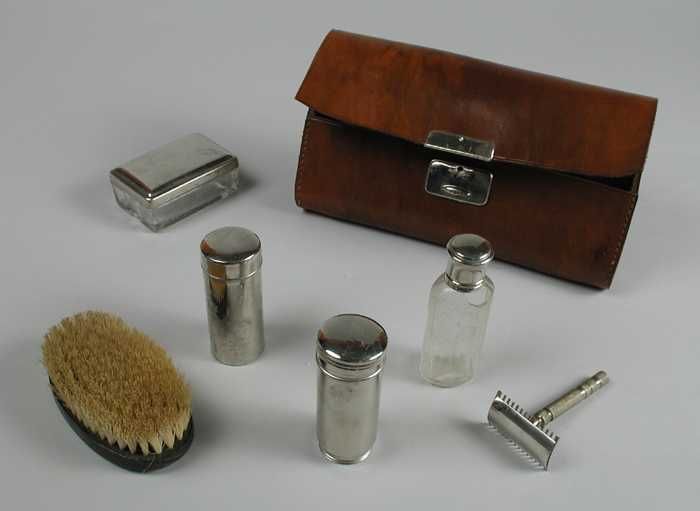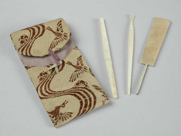 Driedelige manicureset van been of ivoor, in beige-b...