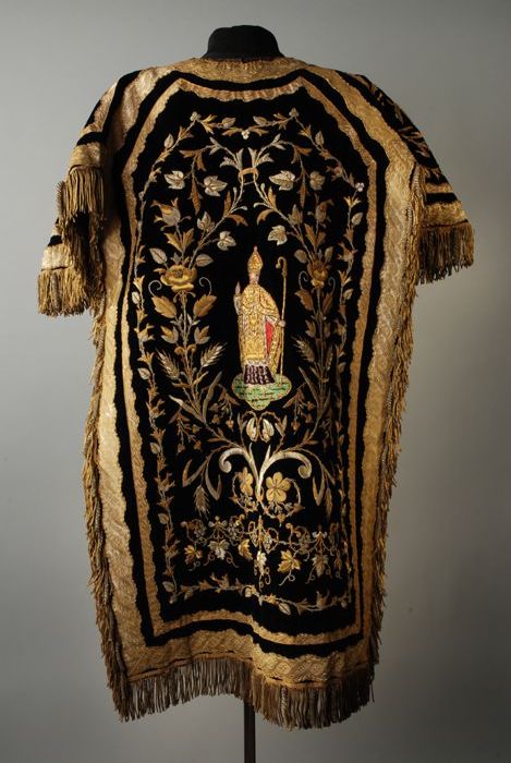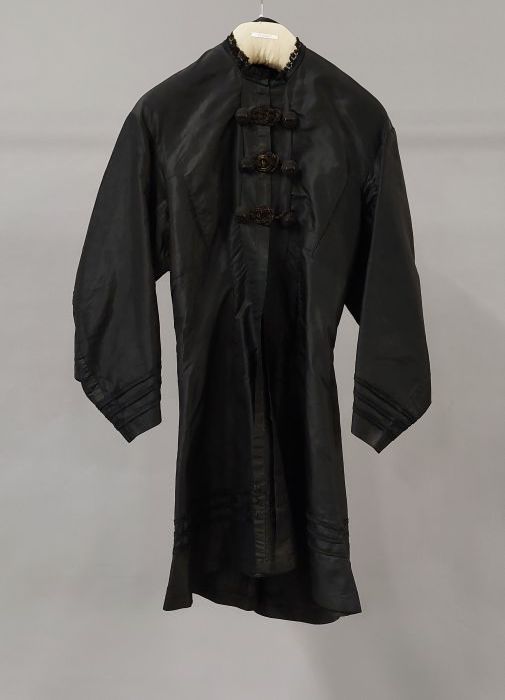 Driekwart mantel van zwart taftzijde met siersluitin...