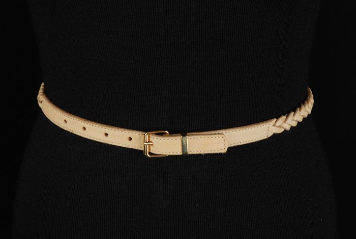 Smalle ceintuur van beige gevlochten leer met goudkl...