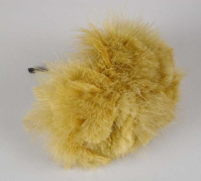 Verendecoratie, pompon van gele donzige veertjes op ...