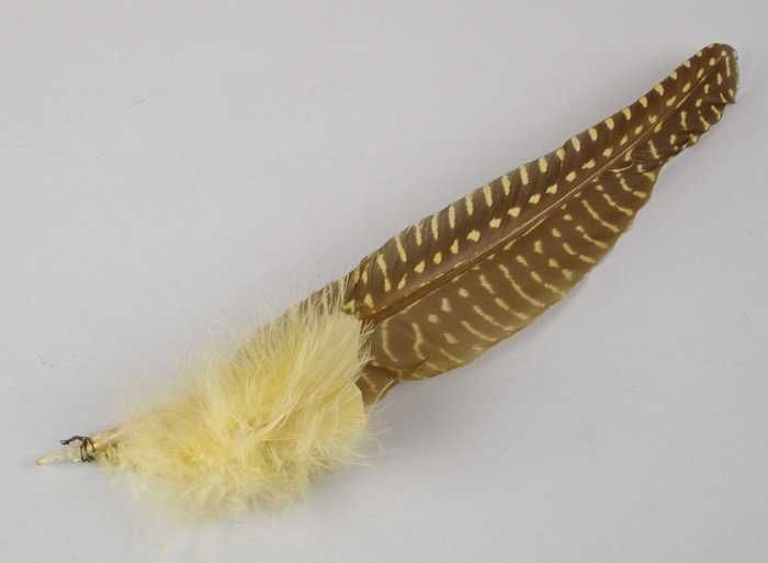 Verendecoratie, geel-beige veer met tekening, ondera...