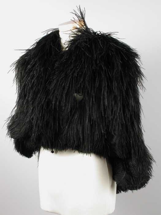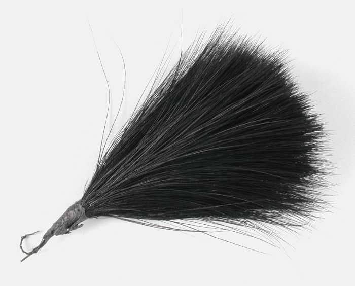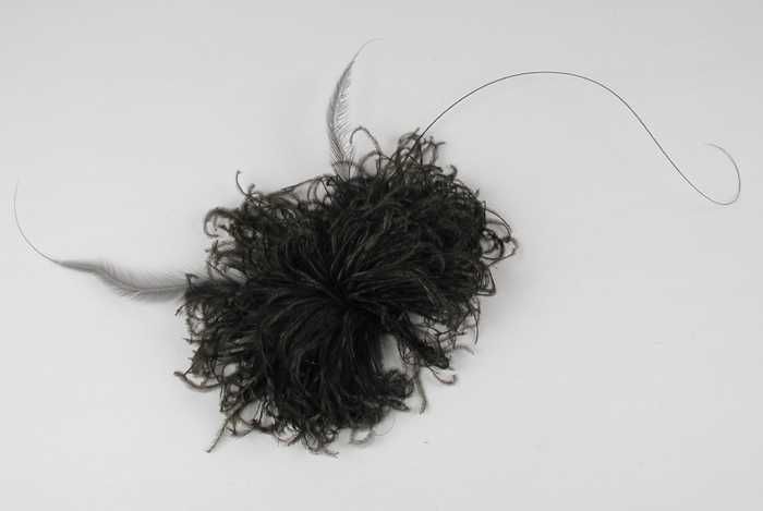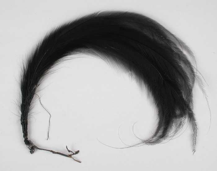 Verendecoratie, toef van donkere korte iriserende ve...