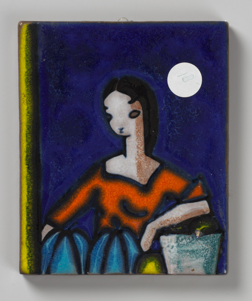 tegel van aardewerk in reliëf, voorstellende: meisje...
