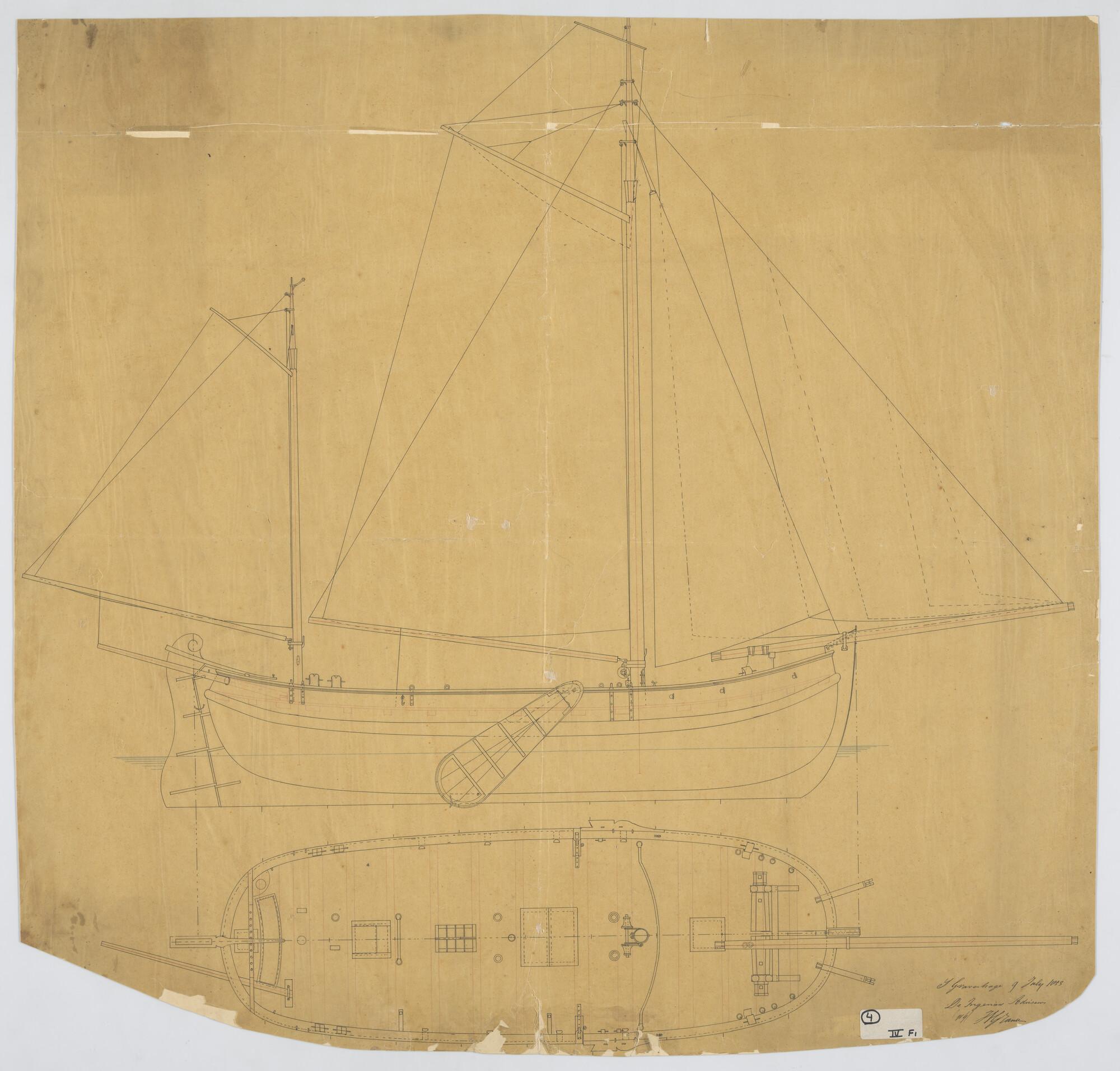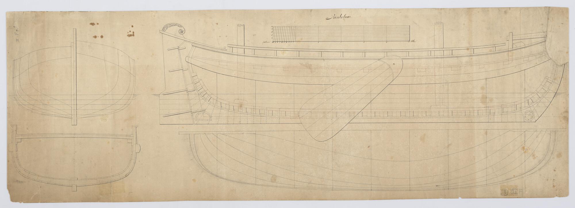 Loodsrinkelaar. Zijaanzicht, tuigplan, dekplan, Lood...