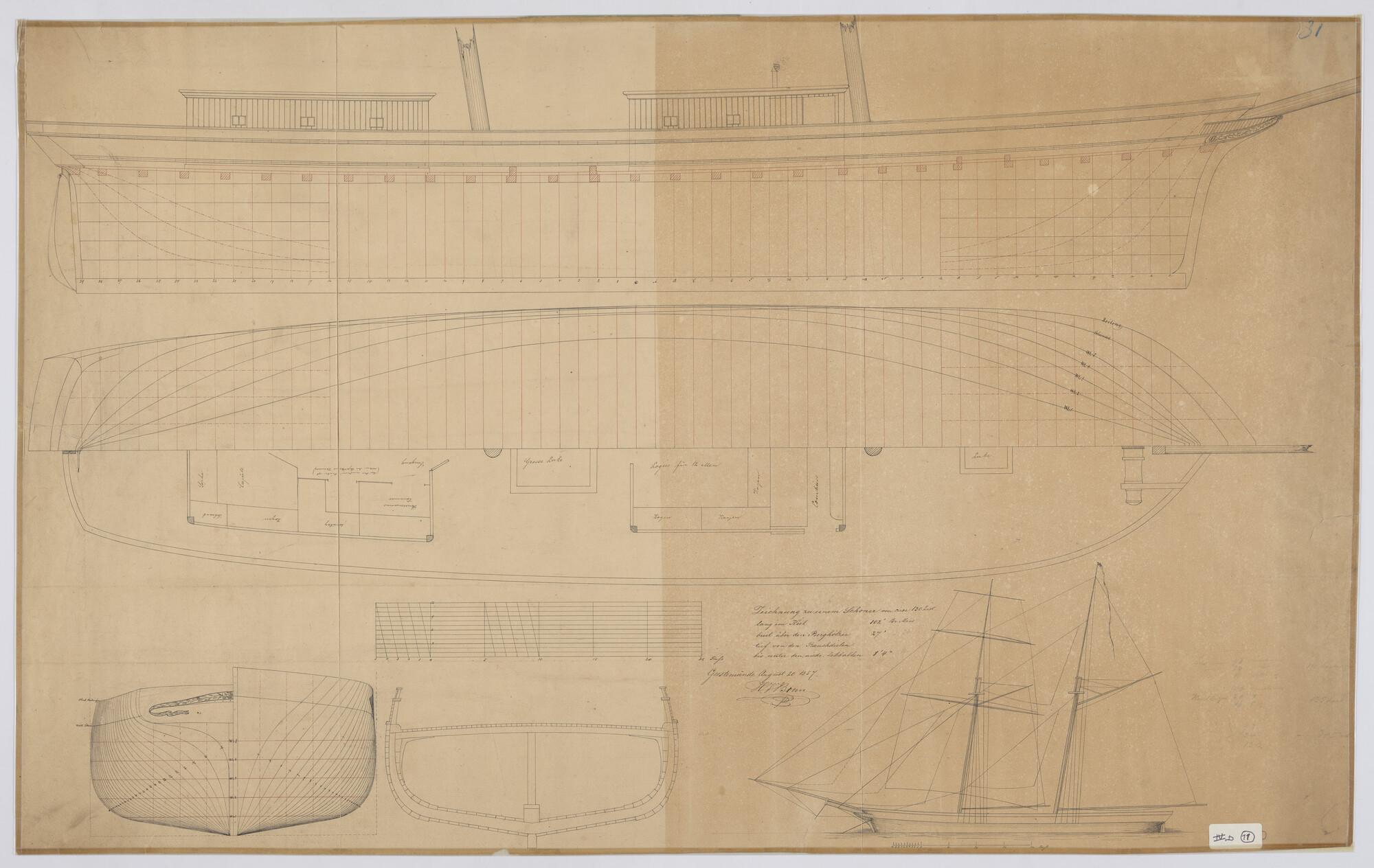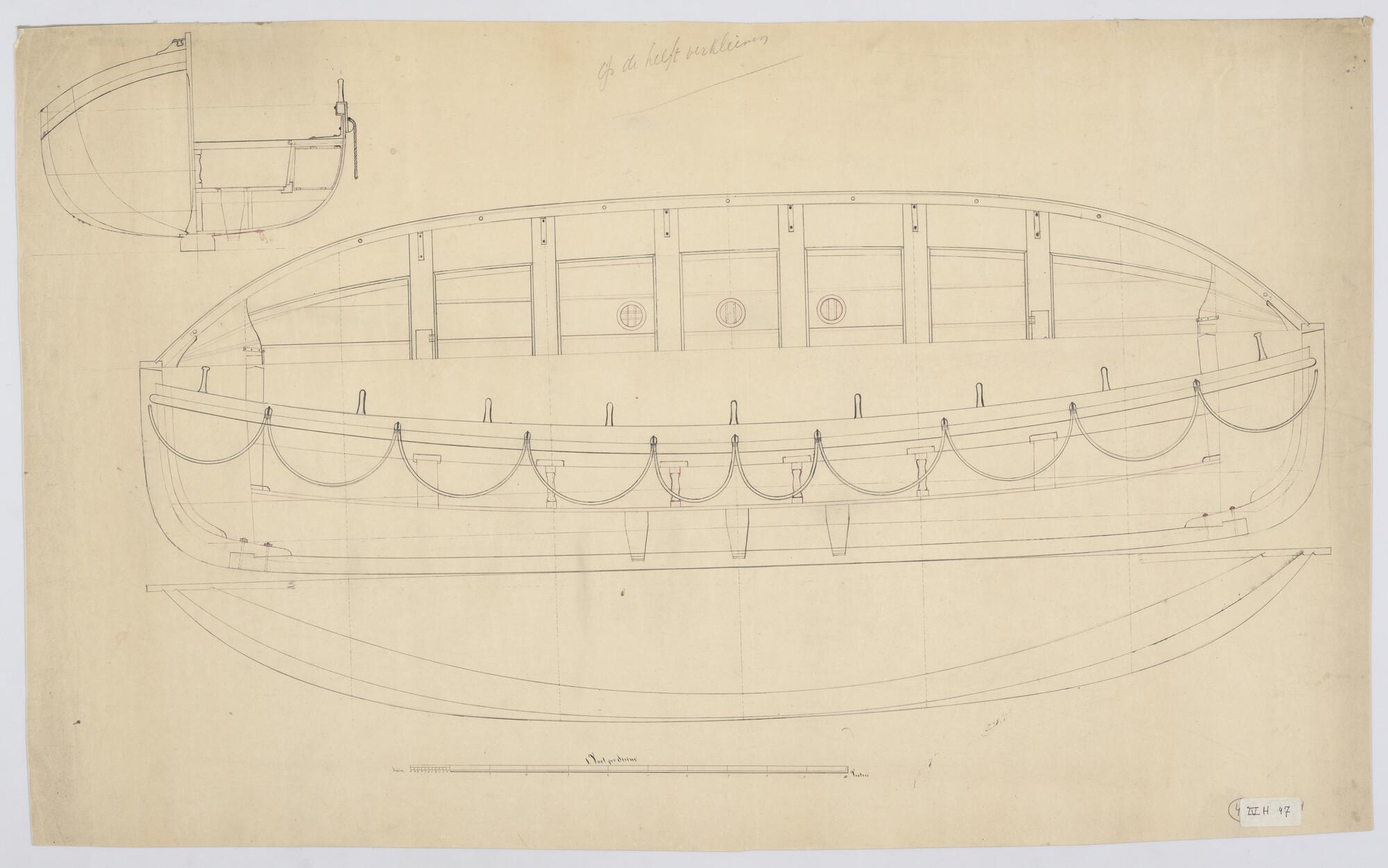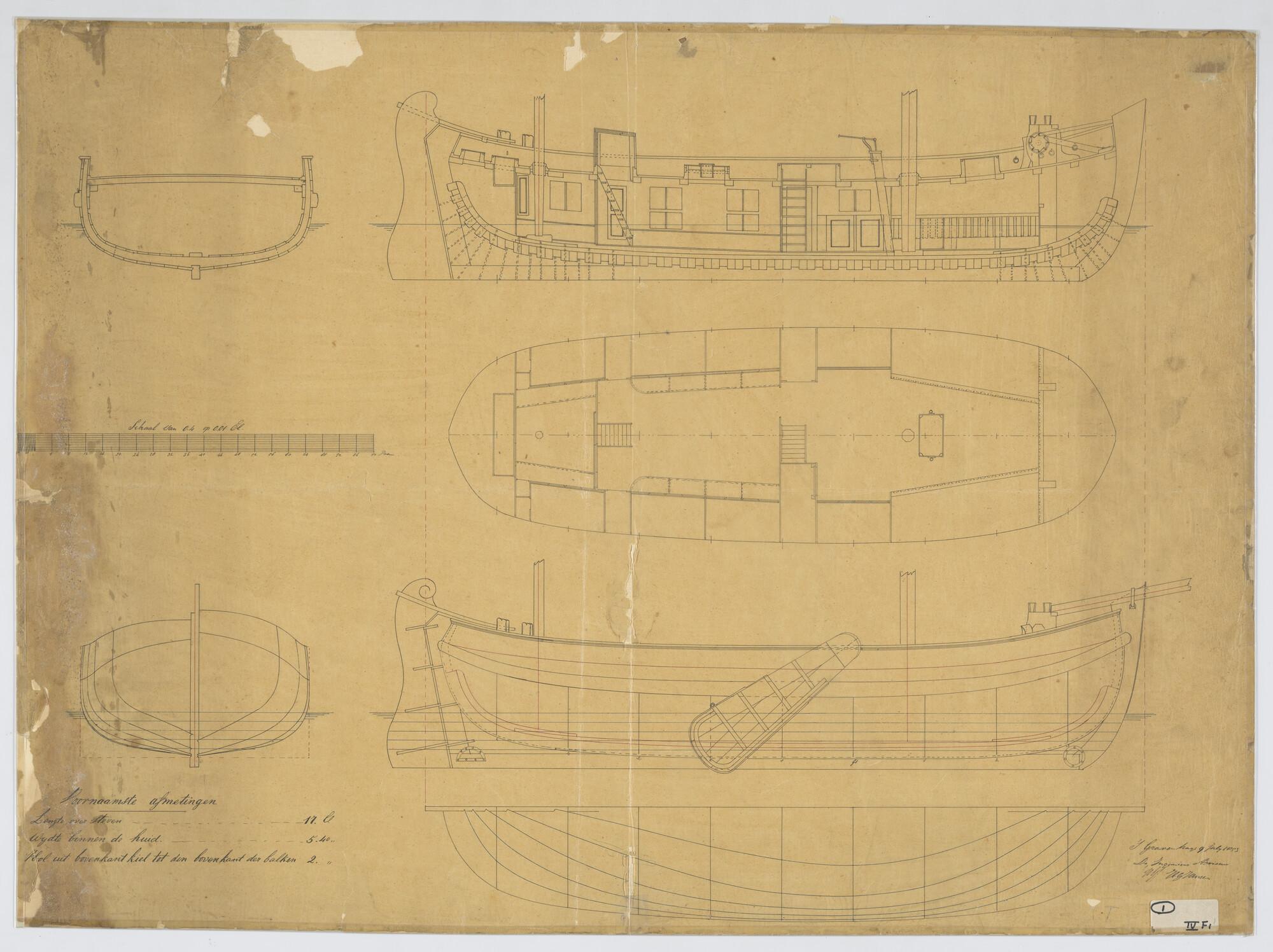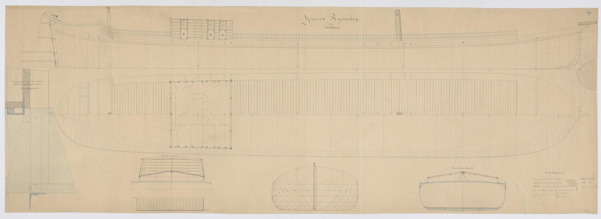 Verticale langsdoorsnede, spantenraam, waterlijnen, ...