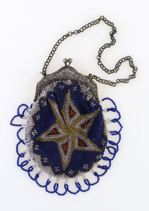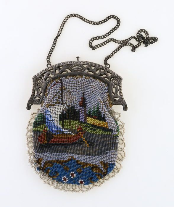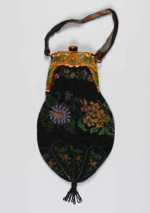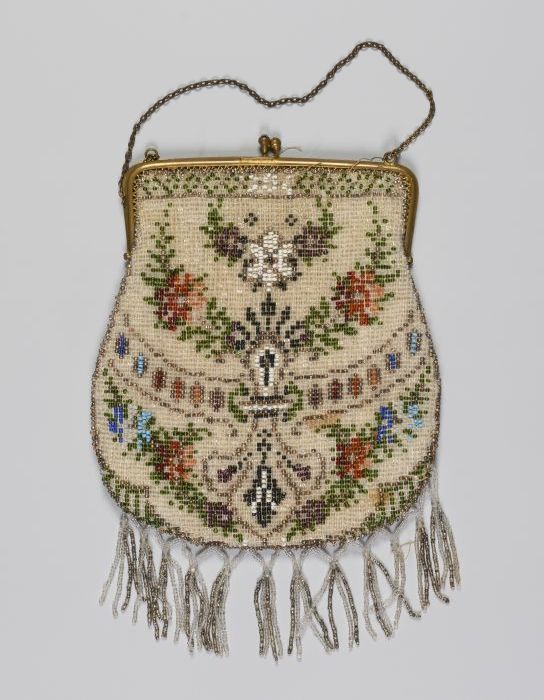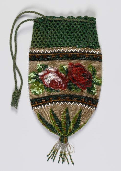 Kralenbeurs, geborduurd met gekleurde kralen, bloemg...