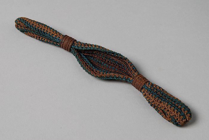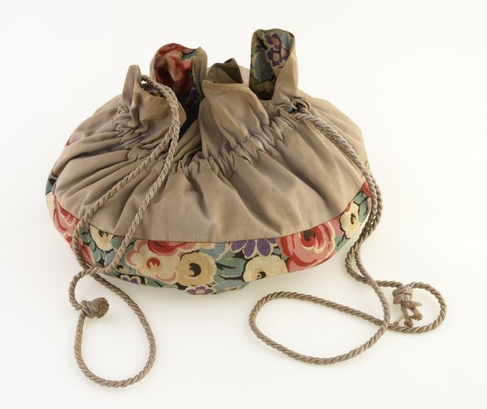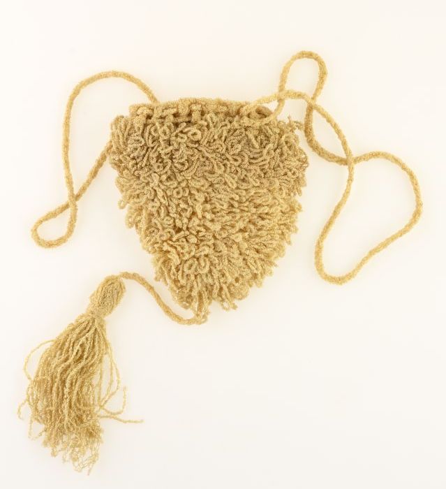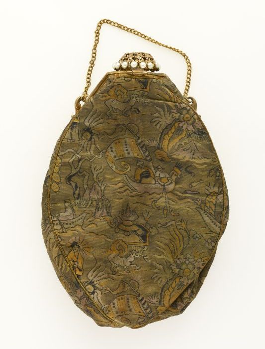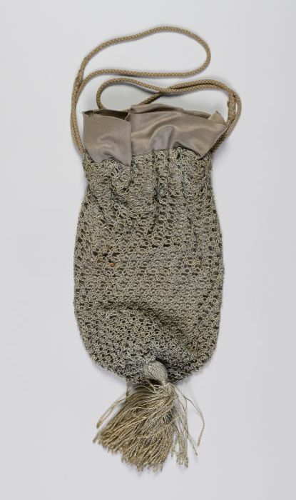 Met gouddraad gebreide reticule, voering met zilverk...