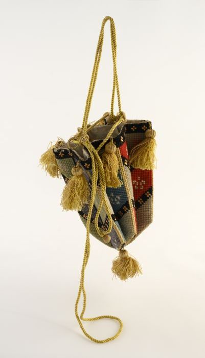 Zeshoekige reticule, tapisserie petit point in wol, ...