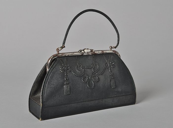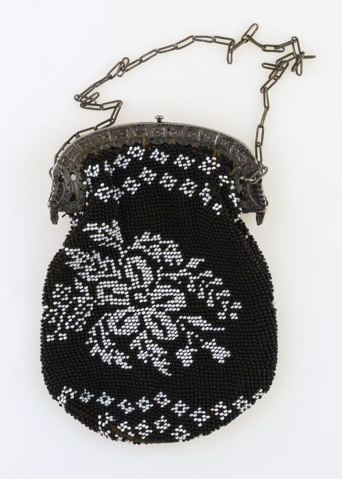 Reticule, zwart met markasiet-kleurig kralenborduurs...