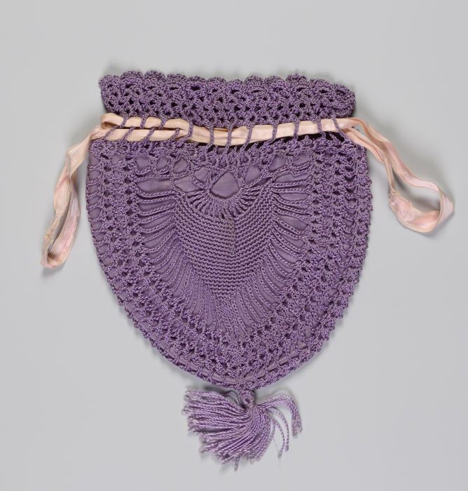 Gehaakte reticule van lila gemerceriseerd garen, ond...