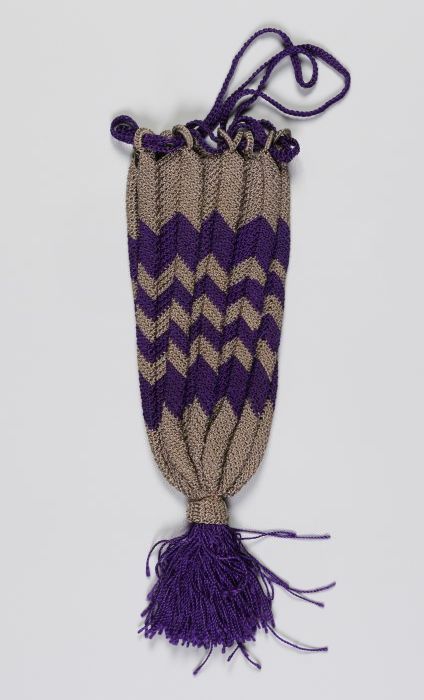 Lange reticule van paars en zilvergrijs gemercerisee...