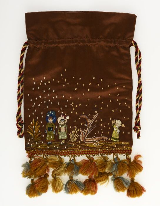 Bruine reticule met geborduurd sneeuwlandschap met d...
