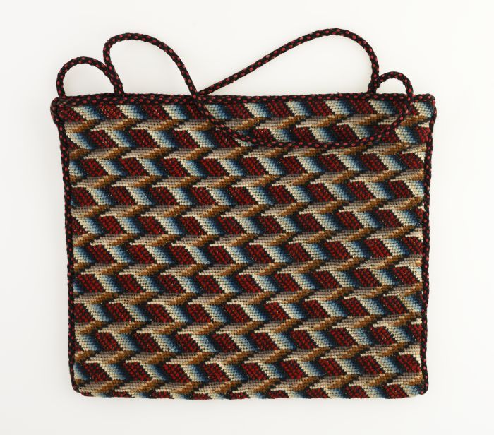 Plat tasje met geborduurd zigzag-motief in rood, zwa...