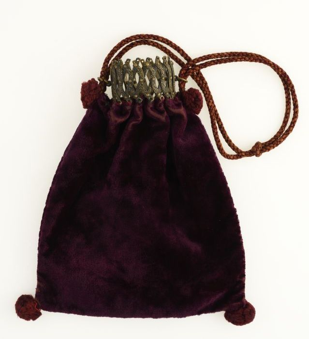 Bordeauxrode fluwelen reticule, met ronde sluiting, ...