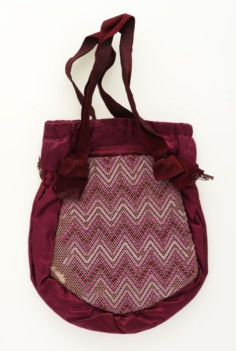 Bordeauxrode zijdesatijnen reticule, met zigzagmotie...