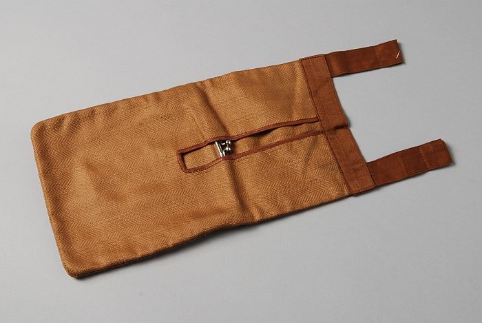 Okerkleurige schortbeurs, lange rechthoekige zak met...