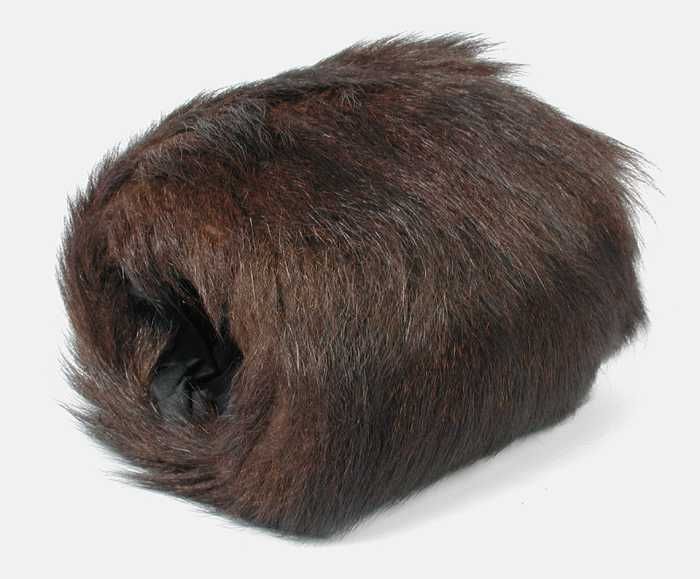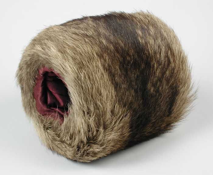 Kleine mof van ruwharig licht- en donkerbruin bont, ...