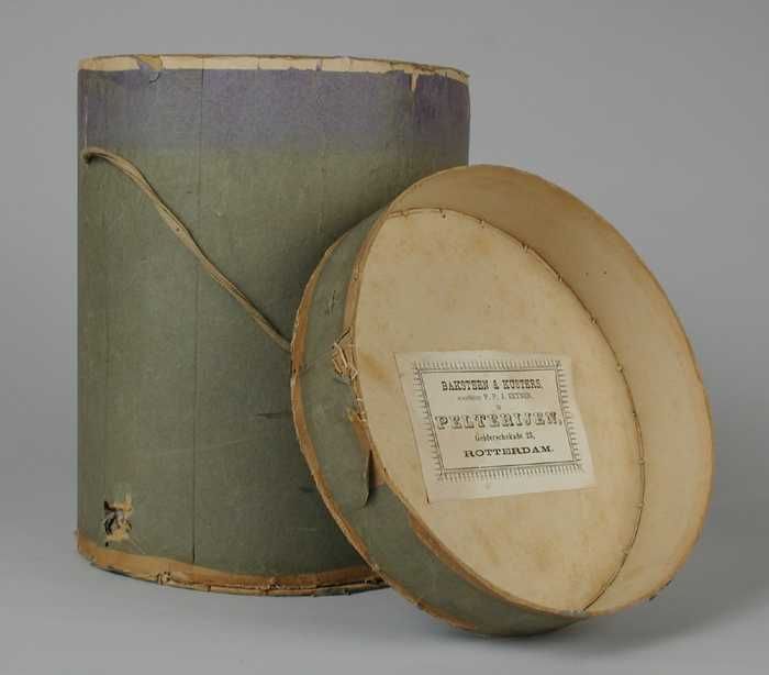 Cilindervormige doos met deksel, bekleed met donkerg...