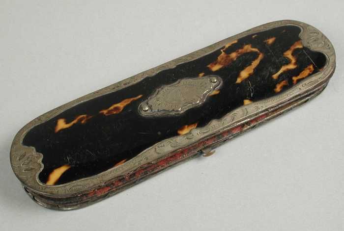 Smalle brillenkoker van schildpad met bewerkte zilve...