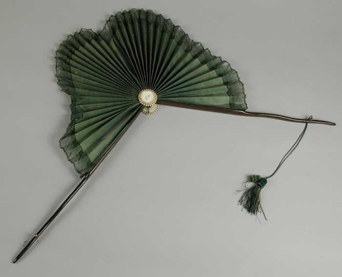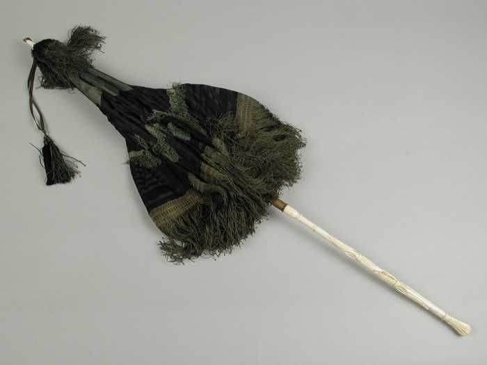 Rijtuigparasol met bekleding van zwart en groene zij...