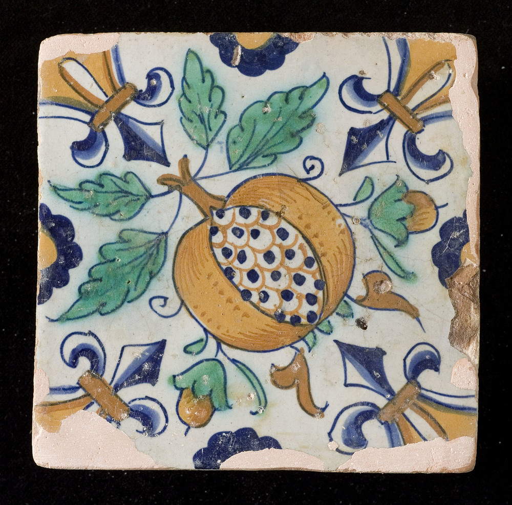 Tegel van keramiek met tinglazuur, voorstellende: or...