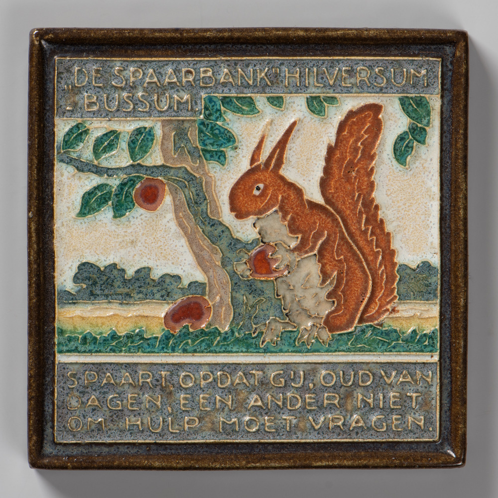 Tegel in cloisonné-techniek, met voorstelling: eekho...