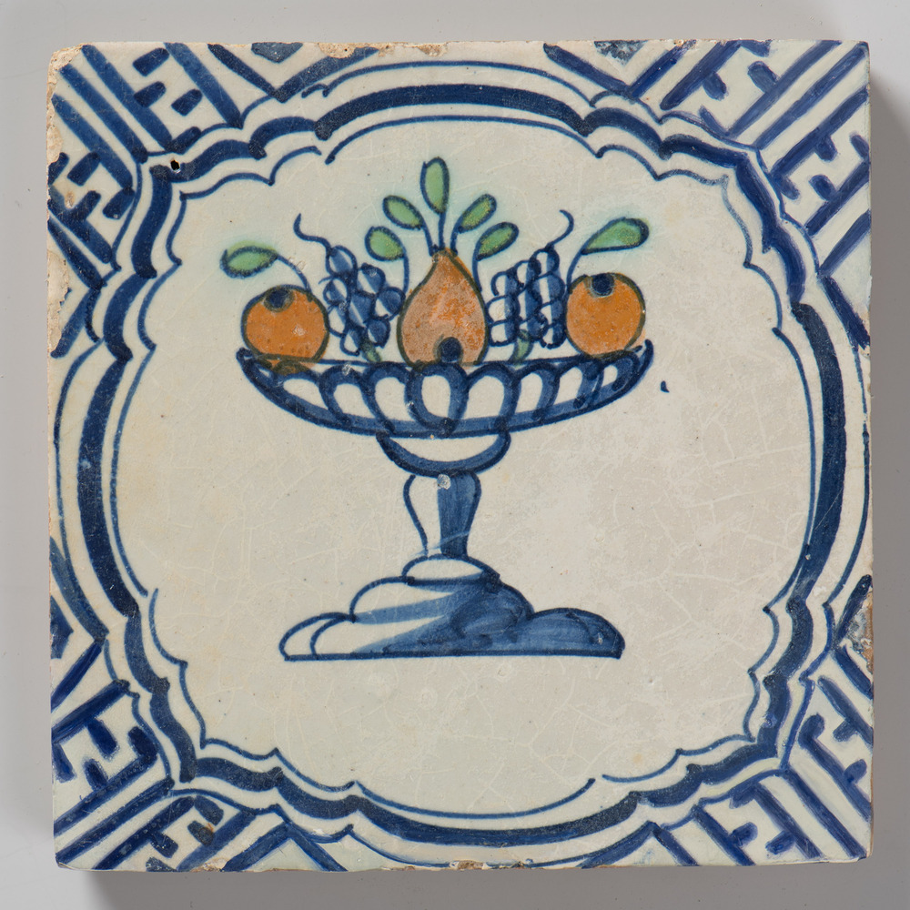 tegel van keramiek met tinglazuur, voorstellende: fr...
